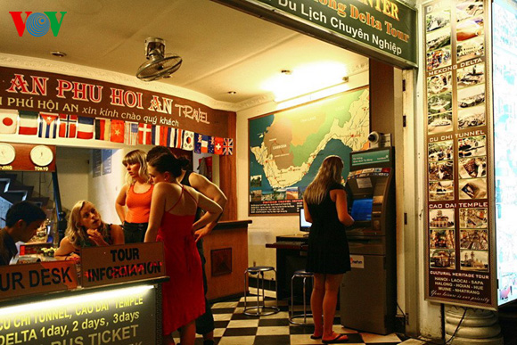 | In einem Tourismusbüro in der Pham Ngu Lao-Straße: obwohl es schon spät ist, ist es noch immer gut besucht. |
