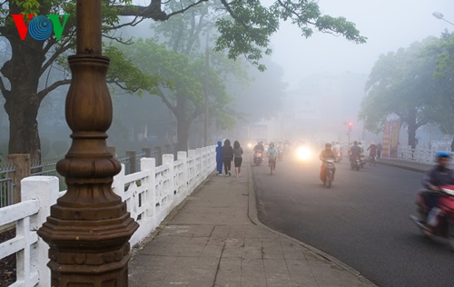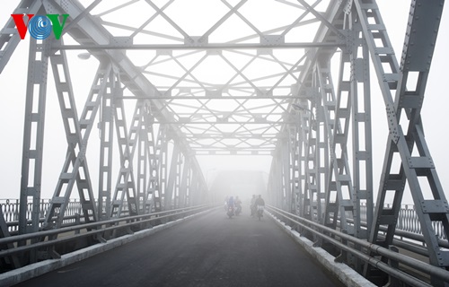 | Im Nebel verschwimmt die Trang Tien-Brücke. |