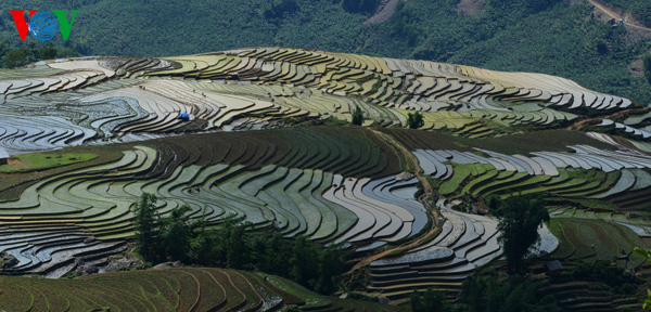 (VOVword) – Im Mai beginnt die Zeit zum Reis-Anpflanzen. Dann sind die Reisterrassen in Y Ty voll von Wasser. Von weitem aus sehen sie wie "Treppen zum Himmel" aus.