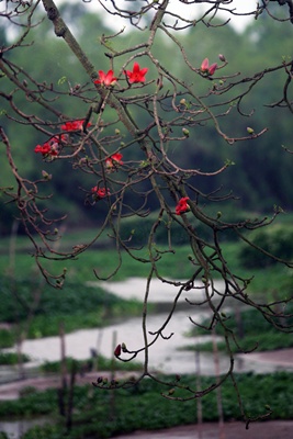 Fast alle ländlichen Gebiete in Nordvietnam haben einen roten Seidenwollbaum. Die Blüten dieser Bäume in Vietnam haben verschiedene Namen, darunter Po Lang-Blüte und Moc Mien-Blüte. Laut den Erfahrungen der älteren Menschen in Vietnam war früher die Blüte der roten Seidenwollenbäume das Signal für den Wechsel der Jahreszeiten. Die Blume des roten Seidenwollbaums hat fünf Blätter. Und wenn sie vom Baum fällt, dreht sie sich wie ein Windrädchen.
