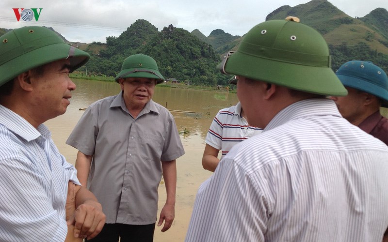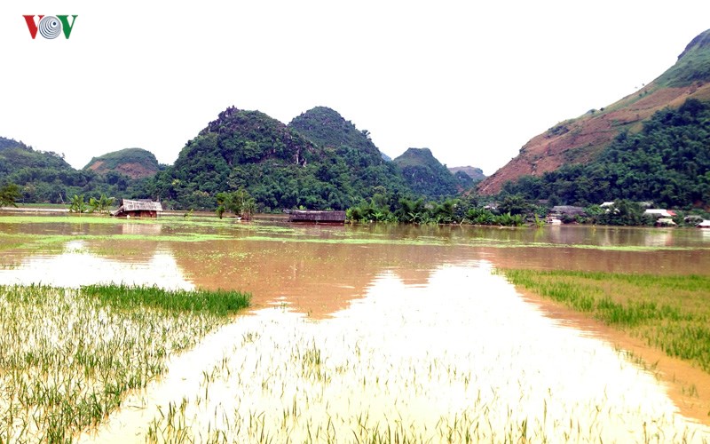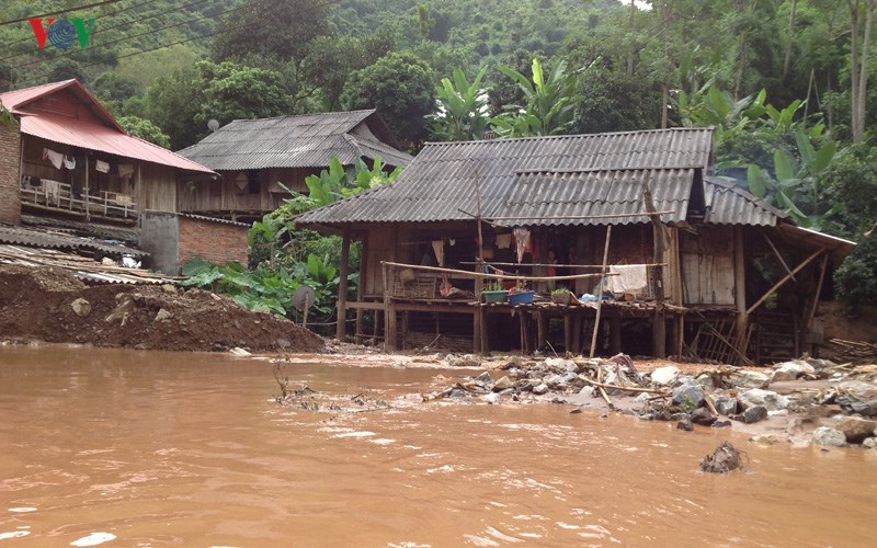 | In den Gemeinden Tong Co und Thuan Chau stehen viele Häuser und Reisfelder unter Wasser. |
