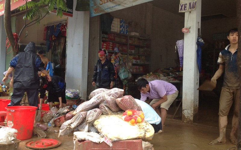 | Viele Händler auf dem Markt Tong Lanh haben ihre Waren durch das Hochwasser verloren. |