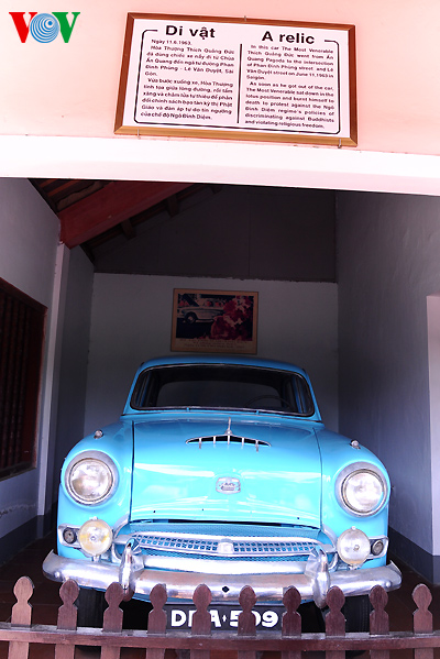| In der Pagode steht noch der Austin des Mönchs Thich Quang Duc, der 1963 damit, aus Protest gegen die Buddhistenverfolgung durch das Ngo Dinh Diem Regime, nach Saigon fuhr, um sich dort zu verbrennen. |