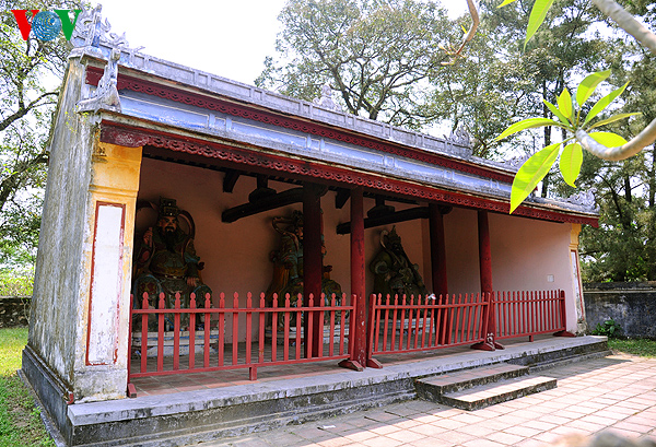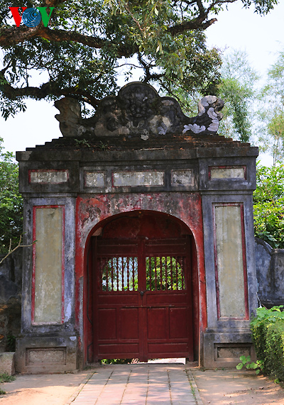 | Am Tor stehen an beiden Seiten zwei Loi Gia-Häuser – eine Art Tempel – die unter der Zeit des Königs Gia Long 1815 gebaut wurden. In jedem Loi Gia-Haus befinden sich drei Kim Cuong-Statuen. |