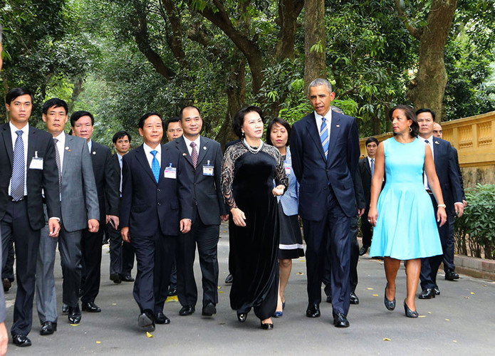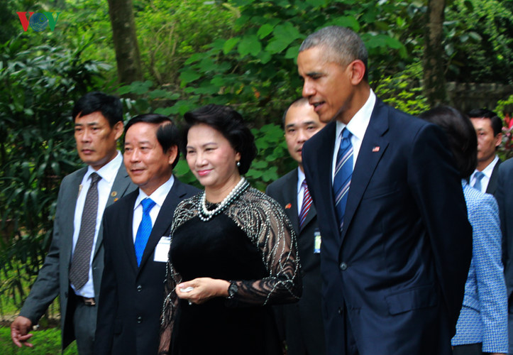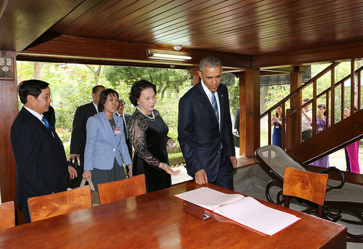 (VOVworld) – US-Präsident Barack Obama hat während seines Vietnam-Besuchs das Stelzenhaus Ho Chi Minhs besucht. Er und Vietnams Parlamentspräsidentin Nguyen Thi Kim Ngan liefen vom Präsidentenpalast zum Haus.
