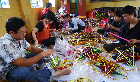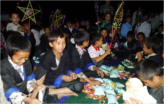(VOVworld) – Die gebirgige Gemeinde Che Tao gehört zum Kreis Mu Cang Chai in der nordwestvietnamesischen Provinz Yen Bai. Rund 1.700 Einwohner leben verstreut in der etwa 30 Quadratkilometer großen Region, die durch Berge und Täler nur schwer zugänglich ist. Ein einziger Gehweg, der in allen vier Jahreszeiten sehr rutschig ist, verbindet die Gemeinde Che Tao mit der Kreisstadt Mu Cang Chai. Dies stellte jedoch kein Hindernis für eine Gruppe Jugendlicher aus Hanoi dar. Sie fuhren mit ihren Fahrrädern zu den Kindern in Che Tao, um ihnen Geschenke für das Vollmondfest zu bringen. 16 Millionen vietnamesische Dong (umgerechnet etwa 800 US-Dollar) und viele Lehrnmaterialien wurden den Kindern übergeben. Die Jugendlichen aus Hanoi nahmen auch am Vollmondfest der Kinder teil.