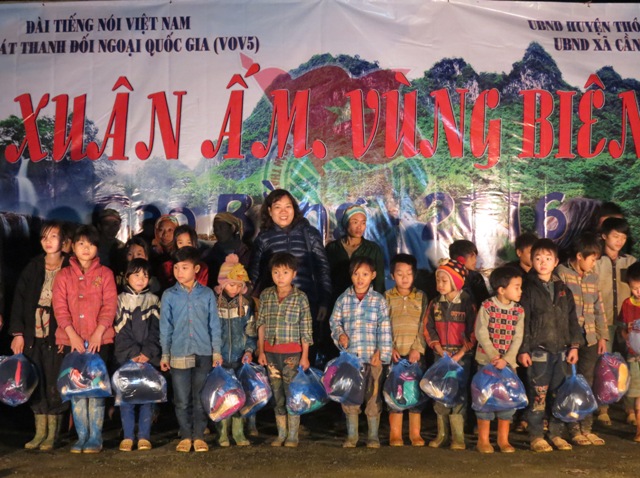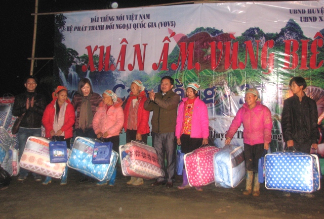 (VOVworld) - Im Vorfeld des traditionellen Neujahrsfests Tet hat der Auslandskanal der Stimme Vietnams VOV5 Geschenke an die arme ethnische Minderheit im Norden des Landes überreicht. Sie wohnt im Grenzgebiet der Gemeinde Can Nong des Kreises Thong Nong in der Provinz Cao Bang. In dieser entlegenen Gemeinde sind die Hälfte von den 358 Haushalten arm. In den fünf Ortschaften Na Tenh, Khau Dua, Phieng Pan, Lung Vai und Nguom Quoc gibt es noch keine Verkehrsverbindungen und Stromleitungen. Dort bekamen 235 Schülerinnen und Schüler, 50 Lehrerinnen und 122 arme Haushalte Geschenke, wie Decken, Jacken, Schals und lebensnotwendige Gegenständen.