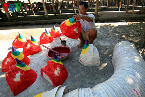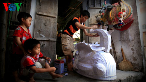 (VOVworld) - In der Subventionszeit vor 1986 wurde im Dorf Gao in Vu Ban in der nordvietnamesischen Provinz Nam Dinh eine Genossenschaft gegründet, die nur Löwenköpfe herstellte. Löwenköpfe werden für den traditionellen Löwentanz benutzt, vor allem anlässlich des Mittelherbstfestes. Damals belieferte der Staat das Dorf mit alten Papieren, Bambus und Farben und bekam anschließend fertig hergestellte Löwenköpfe. Das Dorf durfte seine Produkte jedoch nicht selbst verkaufen, sie wurden nur über staatliche Geschäfte vertrieben.
