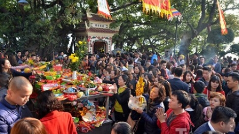 (VOVworld) – Tausende Besucher sind am 3. Tag nach dem Neujahrsfest Tet am 10. Februar zum Tempel Tay Ho in Hanoi gekommen.