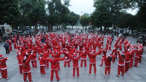 (VOVworld) – Mitglieder des Lachyoga-Klubs in Hanoi haben am Frühmorgen des 23. Dezembers eine einzigartige Übung am Hoan Kiem-See gehabt. Sie verkleideten sich bei der Übung als Weihnachtsmänner.