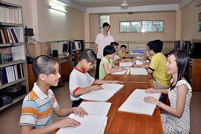 Viele von den ehemaligen Blinden im Zentrum leben erfolgreich und kehrten zurück, um Quoc Phong zu helfen. Eine davon ist Nguyen Thi Kieu Oanh. Sie hat Englisch in Ho Chi Minh Stadt studiert und wurde 2011 im Zentrum eingestellt. Nun bringt sie den Blinden im Zentrum Englisch bei, sagt Kieu Oanh.