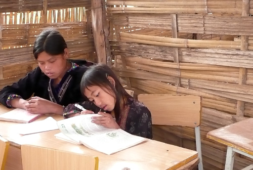 | Kinder der ethnischen Minderheiten im Klassenraum |