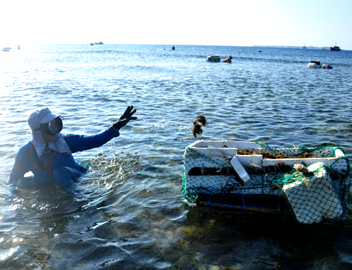 “Normalerweise kann ich ein Dutzend Kilogramm Tange sammeln. Ich fange die Arbeit um 14Uhr30 an. Die Sammler wie ich müssen nur die Wurzel der Tange sauber machen. Die restliche Arbeit übernehmen die Händler, bevor sie diese an ihre Kunden verkaufen.”