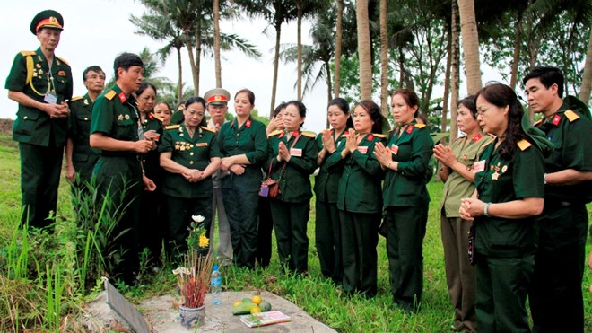 | Ehemalige jugendliche Freiwillige besuchen Gräber ihrer Kameraden. (Foto: tienphong.vn) |