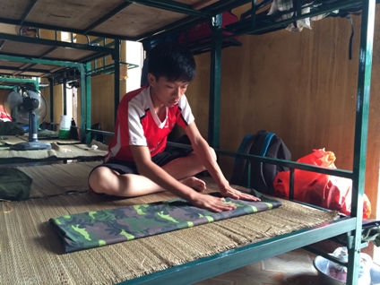 Pünktlich um 5h30 klingelt der Wecker. 102 junge „Soldaten“ stehen auf. Sie machen ihr Bett und gehen auf den Hof, machen Frühsport. Der Alltag beginnt für die Jugendlichen wie im Militärdienst. Zu den Mahlzeiten geht es in die Küche und im Nachhinein wird der Tisch eigens abgeräumt. Die Jugendlichen sind in Bereitschaft und gehorchen auf Kommando. Viele der jungen „Soldaten“ haben anfangs noch Schwierigkeiten. Der Achtklässler Nguyen Duc Huy, Einzelkind, bekommt viel Unterstützung seitens seiner Eltern. Im Militärsemester ist es ganz anders, denn er muss wie ein echter Soldat alles selbst machen und organisieren. Seine Kleidung muss er selbst waschen, kein Spielen, keine Handys. Anfangs weinte er und wollte nach Hause gehen. Aber mit der Unterstützung bzw. Überredung von Mitarbeiter des Militärsemesters fühlt er sich wie zu Hause und findet er seine Freude nur nach 4 Tage.