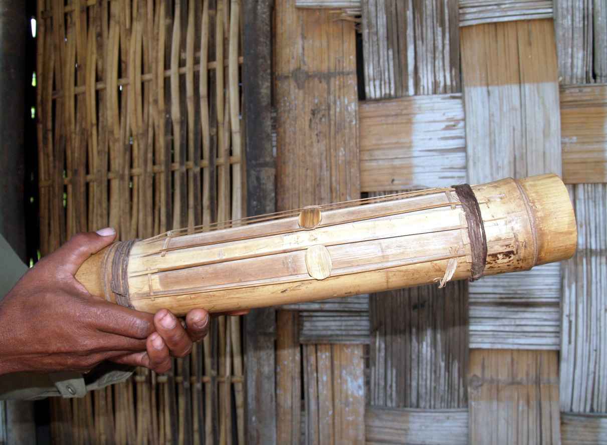 „Ich habe dieses Chapi-Bambusinstrument fast angefertigt. Es verfügt über sechs kleine Löcher. Die zwei Löcher an den beiden Enden des Instruments sollen die Töne übertragen. Durch die restlichen Löcher in Reihe können die Töne auf verschiedenen Melodien klingen.“