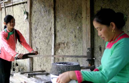 Zwei Frauen der Volksgruppe der Giay beim Kochen in der Küche. (Foto: dongvan.gov.vn)