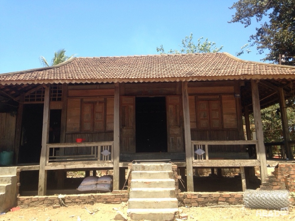 „Die K’Ho verwenden beim Hausbau überwiegend Baumstämme, die getrocknet und deren Rinde abgeschält wurde. Die Baumstämme werden zu Haussäulen, Haustreppen und Wänden verarbeitet. Die K’Ho bevorzugen nun kürzere Stelzen für ihre traditionellen Häuser. Die Dächer vieler Häuser der K’Ho bestehen aus Blech.“