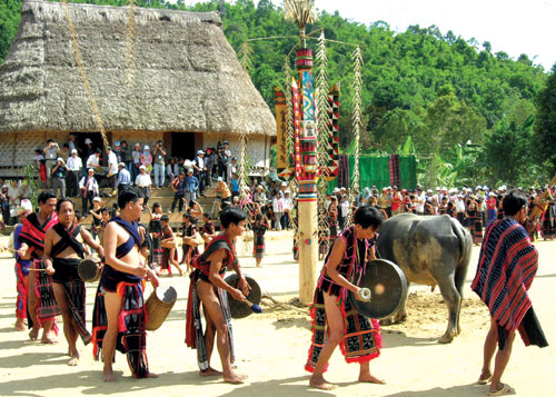 „Das Schlachtfest der Wasserbüffel ist ein großes und heiliges Fest der Bana. Es gilt ebenfalls als Opferfest, in dem viele Rituale durchgeführt werden. Darunter sind die Rituale zur Ehrung der Götter, zum Trinken des Can-Schnaps, zum Schlagen des Gongs und zum Weinen für die Wasserbüffel.”