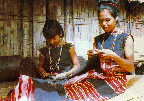 ”Wie andere Volksgruppen in Tay Nguyen sind die Trachten der Xo Dang schwarz und indigoblau. Blusen und Kleider der Frauen werden mit Mustern verziert.”