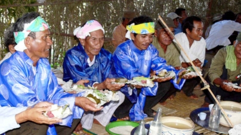 (VOVworld) – Der Day-Kuchen symbolisiert nach Auffassung der Mong den Mond und die Sonne. Die Mong in der Gemeinde Na Tau in Dien Bien stampfen Day-Kuchen zum Tetfest und am Ende der Ernte. Day-Kuchen wird aus Klebreis gemacht.