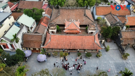 [VOVWORLD] - Im dritten Mondmonat findet das Hung-Tempelfest in der Provinz Phu Tho statt. In Trommelklängen und in Melodien des Xoan-Gesangs erinnert man sich an die Wurzel. Im Vorfeld des Todestags der Hung-Könige üben die Bewohner der alten Xoan-Dörfer den Xoan-Gesang, um sich auf das größte Fest des Jahres vorzubereiten. Dort wird das Erbe nicht nur aufgeführt, sondern auch bewahrt und weitergegeben.