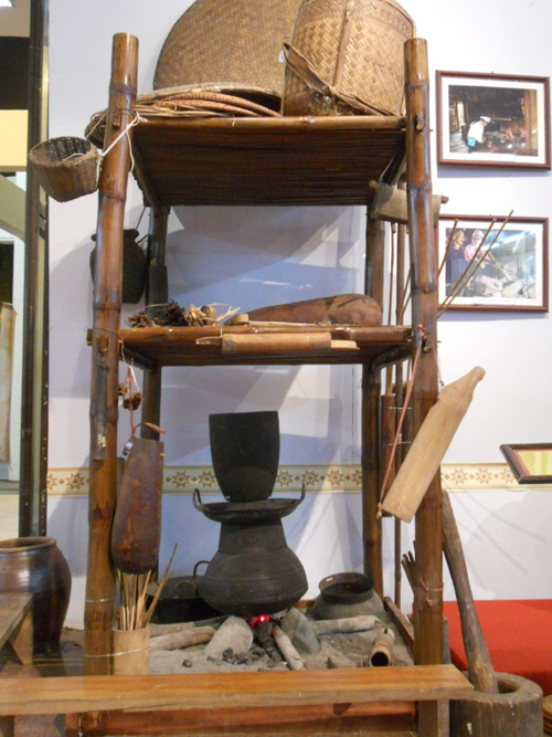 Ganz in der Nähe liegt der Ausstellungsraum der Provinz Lai Chau. Hier können Zuschauer den Schlafraum der Volksgruppe „Weiße Thai“ sowie Trachten und Musikinstrumente der Volksgruppe Laos begutachten. Quang Van Nam stellt sich an das Pi Keo-Instrument, ein traditionelles Blasinstrument der Volksgruppe Laos: