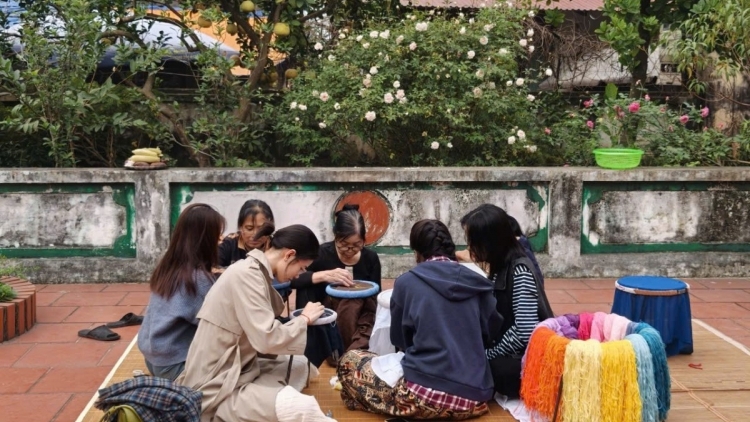 Um die traditionellen Samtprodukte im zeitgenössischen Stil entwerfen zu können, haben die Stickereihandwerker stets neue Tendenzen erkundet. Unter ihren geschickten Händen wurden die Motive von Blüten, Hang-Trong-Volksbildern, entlegenen Dörfern oder Reisterrassen auf Samt lebendig gestickt. Die Kunsthandwerkerin Nguyen Thi Tuyet beschäftigt sich seit 20 Jahren mit der traditionellen Handstickerei. Sie sagt:
