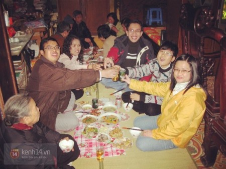 | Mitglieder einer Familien treffen sich beim Essen zum Tetfest. (Foto: kenh14.vn) |