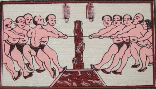 | Das Tauziehen in der vietnamesischen Malerei. |
