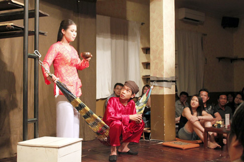 | Die Szene eines Theaterstücks im Cafe Yumy. (Foto: Thoai Ha) |