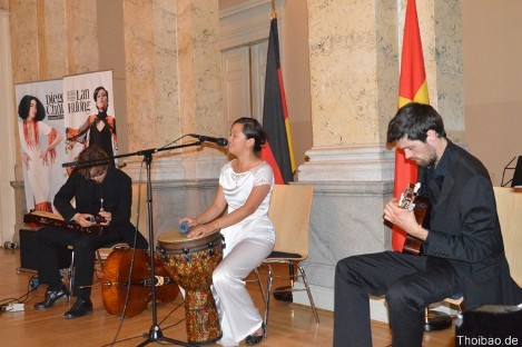 | Eine vietnamesische Künstlerin und zwei deutsche Künstler führen in der Veranstaltung “Die Nacht der vietnamesischen Kultur” in Berlin vor. (Foto: thoibao.de/vietnamnet.vn) |
