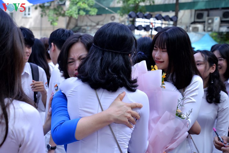 Die Schulabschlussfeier wurde feierlich mit vielen Aktivitäten wie Singen, Gesprächen zwischen Schülern und Lehrern und Fotoaufnahme veranstaltet. |