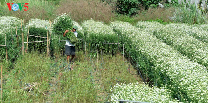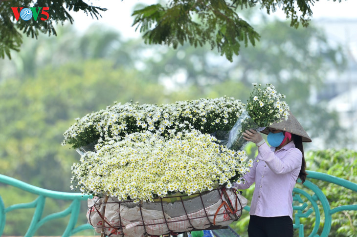 Die Echten Kamillen werden hauptsächlich in Blumengärten in Nhat Tan, Tay Tuu und am Ufer des Roten Flusses angepflanzt. Die Straßenverkäufer holen sie aus den Gärten in Nhat Tan und gehen in den Straßen in Hanoi zu verkaufen.