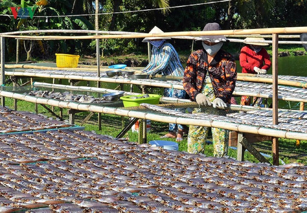 (VOVWORLD) - Ein Monat vor dem Neujahrsfest Tet beschäftigen sich die Dörfer in der südvietnamesischen Provinz Ca Mau mit der Herstellung ihrer Spezialität, dem „getrockneten Schaufelfadenfisch“, um dem Markt aus diesem besonderen Anlass zu bedienen.