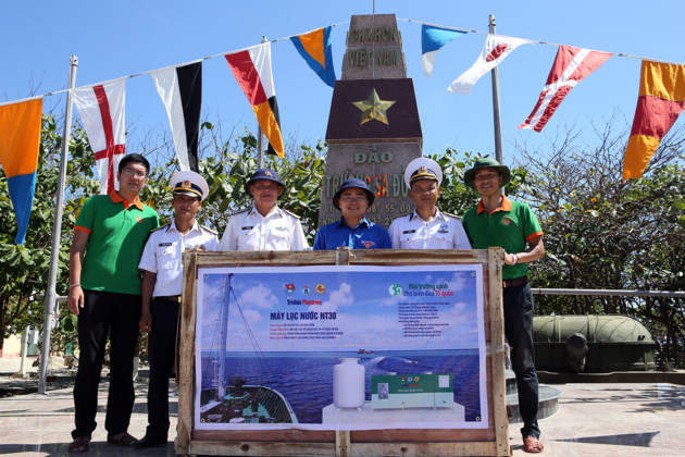 | Sponsoren überreichen der Insel Truong Sa Wasserfilter. (Foto: Le Lam) |