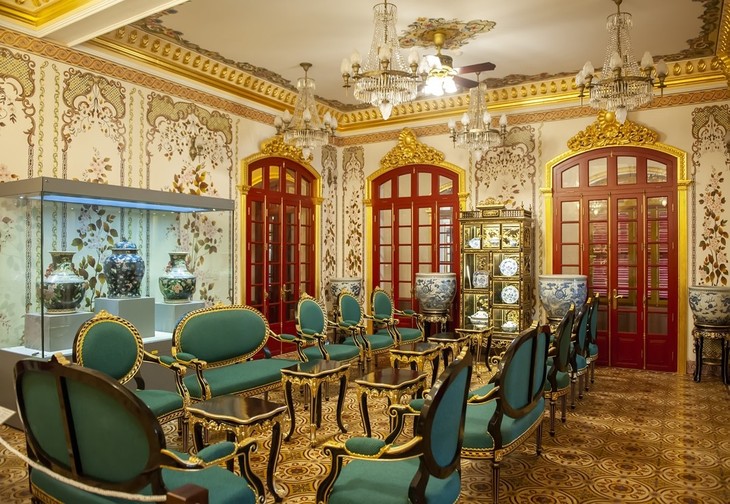 | Die Gegenstände des Königs Khai Dinh, der Besitzer des Palastes, sind im Erdgeschoss ausgestellt. |