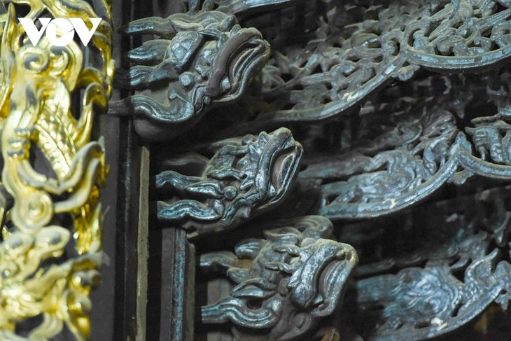 Die Holzverzierung zeigt die Handwerkskunst der damaligen Bildhauer aus Kinh Bac. (Foto: Van Giang)