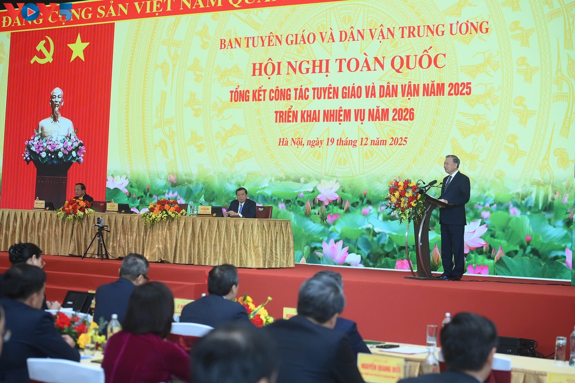 In seiner Rede erklärte To Lam, dass sich das ganze politische System auf den 14. Parteitag vorbereite. Deswegen sollte die Aufklärungs- und Öffentlichkeitsarbeit der Partei praxisnah sein und das Alltagsleben der Bevölkerung und das Interesse der Öffentlichkeit widerspiegeln. Dem Parteichef zufolge sollte die Aufklärungsarbeit in den Medien und auf digitalen Plattformen umfassend erneuert werden.
