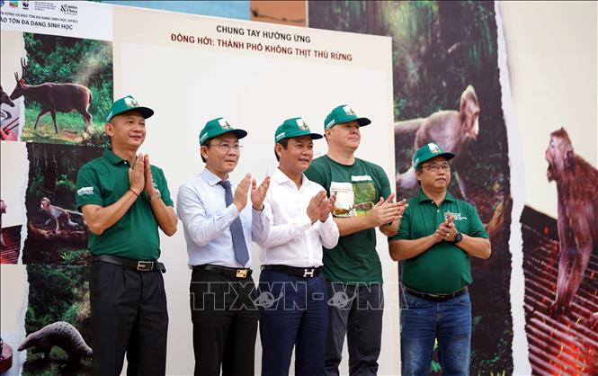 Vertreter des Volkskomitees der Provinz Quang Binh und Organisation unterstützen die Kampagne "Dong Hoi ohne Wildtierfleisch". (Foto: VNA) |