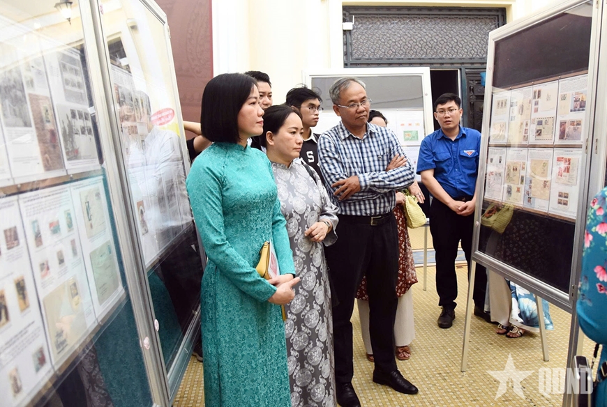 Delegierte besichtigen ausgestellte Briefmarken. (Foto: qdnd.vn) |