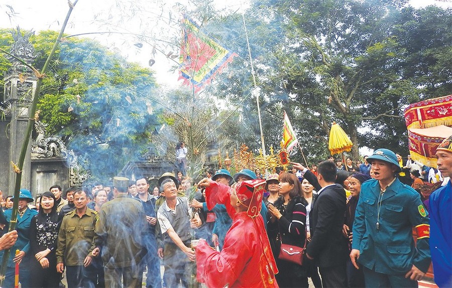 Zahlreiche Menschen nehmen am Cuop-Ken-Fest in der Gemeinde Tho Van teil. (Foto: langngheviet.com.vn) |