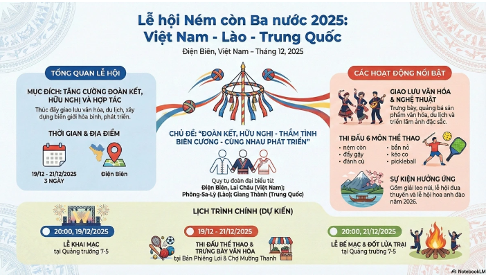 Das dreitägige Festival bietet eine Vielzahl einzigartiger Aktivitäten, darunter: Kulturaustausch, traditionelle Kostümvorführungen, Präsentationen der Kultur- und Tourismusprodukte und Fotoausstellungen im Bereich des Muong Thanh-Marktes.