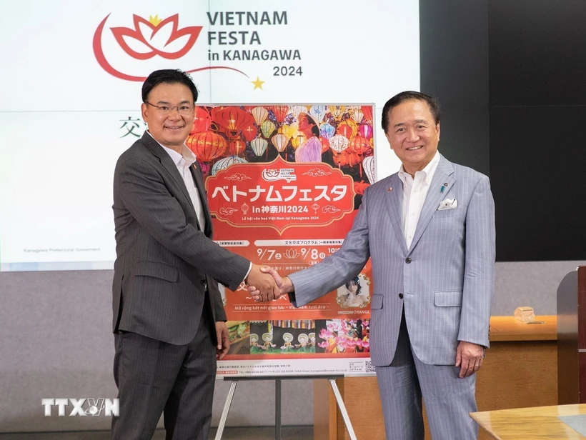 Der vietnamesische Botschafter Pham Quang Hieu (l.) und der Gouverneur der Präfektur Kanagawa, Kuroiwa Yuji. (Foto: VNA) |
