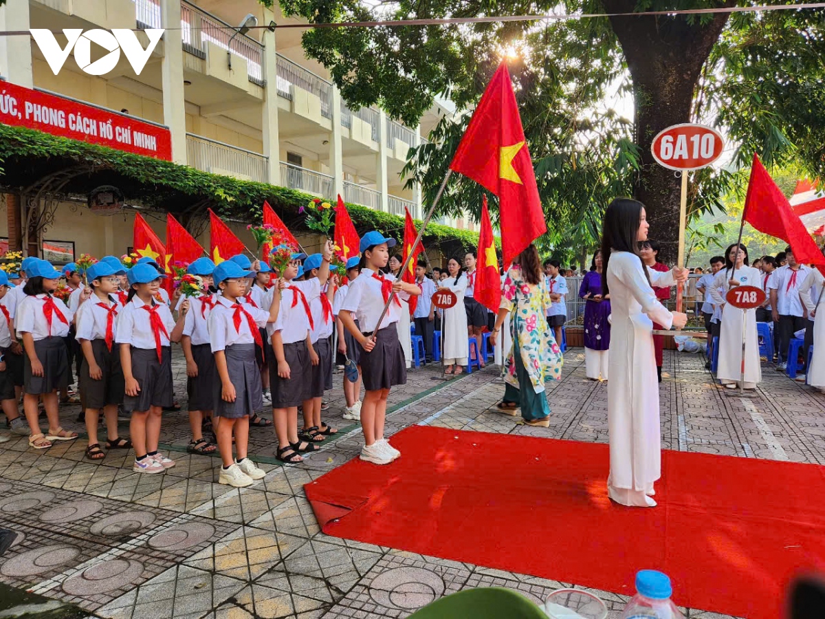 Auch die Schulen im Inselkreis Truong Sa veranstalteten am Donnerstagvormittag die Eröffnungszeremonie des neuen Schuljahres 2024-2025. Truong Nguyen Trieu Vy, eine Schülerin der Grundschule der Kleinstadt Truong Sa im Inselkreis Truong Sa, äußerte sich: