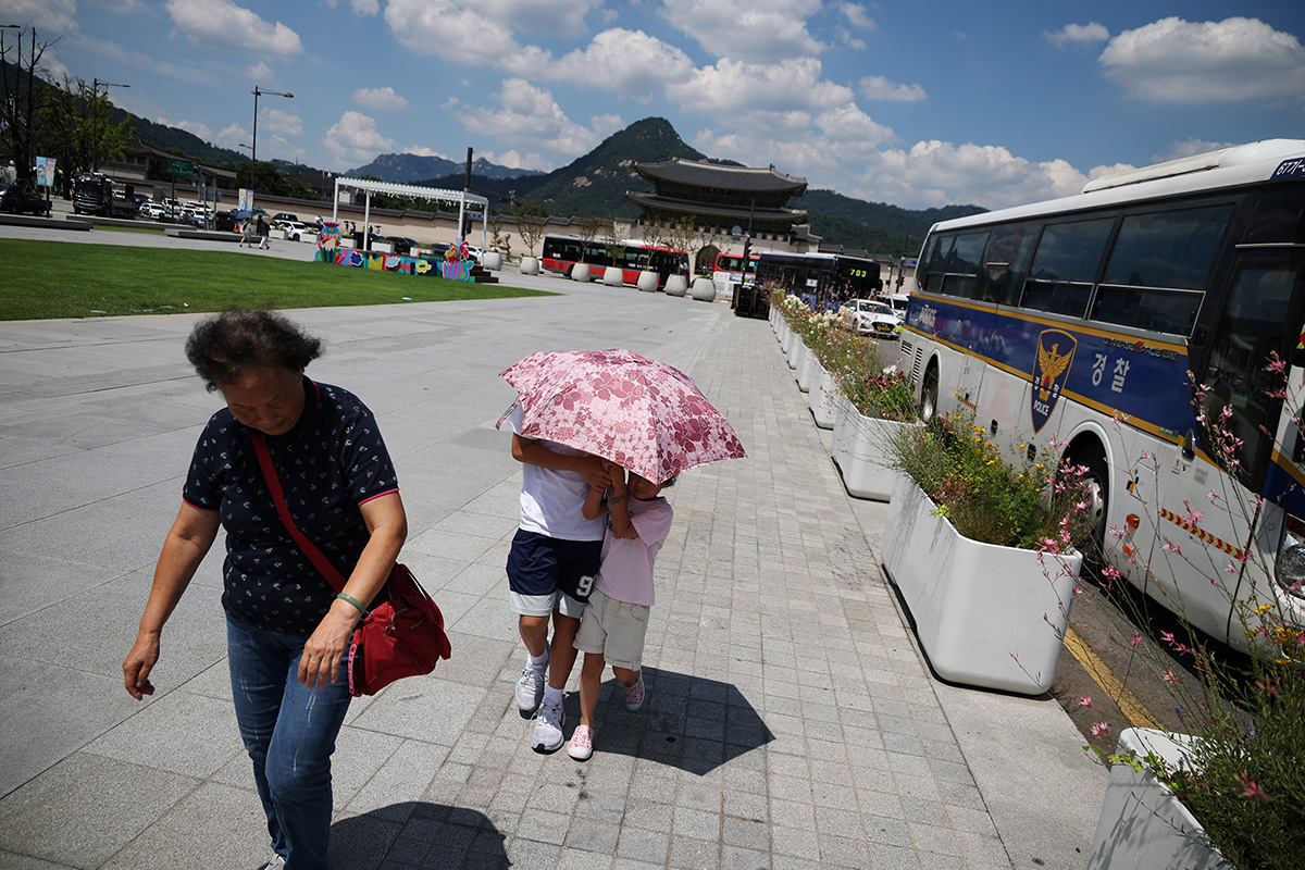 Im südkoreanischen Seoul dienen Regenschirme vornehmlich als Schutz vor der Sonne. (Foto: REUTERS/Kim Hong-ji) |