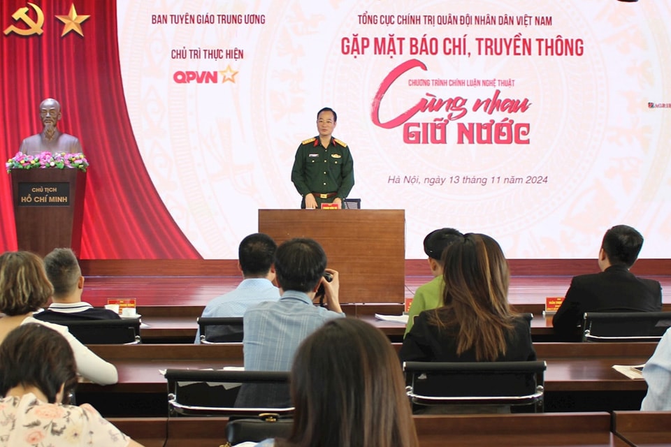 Die Pressekonferenz über das Kunstprogramm „Gemeinsame Landesverteidigung“. (Foto: hanoimoi.vn) |