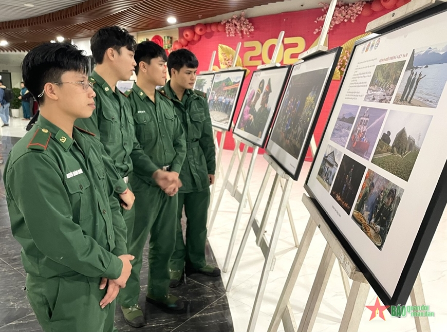 Grenzsoldaten in Danang besuchen die Ausstellung. (Foto: Qdnd.vn) |