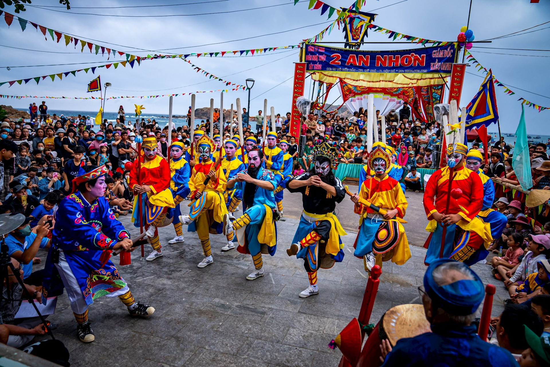 Dabei führen sie folkloristische Rituale durch und beten um Glück und Frieden. Während des Festes tanzen und singen die Fischer den Ba Trao-Gesang. Außerdem nehmen sie an Sportaktivitäten und Volksspielen wie Tauziehen, Blinde-Kuh, Topfschlagen und Sackhüpfen teil. Aus diesem Anlass lud der Organisator die Kunstensembles für Tuong-Gesang und Boi-Gesang anderer Provinzen zur Aufführung ein. Das Fest zur Wal-Verehrung in Binh Dinh dauert bis Sonntag.