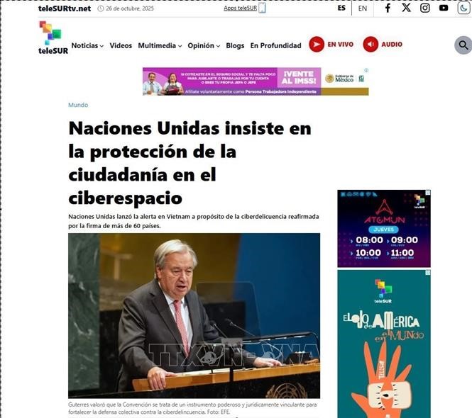 In einem Artikel unter dem Titel „UNO appelliert an Zivilschutz im Cyberspace“ betonte der venezolanische TV-Satellitensender „teleSUR“, dass die Veranstaltung dieses globalen Ereignisses die aktive Rolle des Gastgebers Vietnams zur Stärkung des Multilateralismus zeige. Zugleich wurde eine Aussage von UN-Generalsekretär Antonio Guterres im Artikel zitiert, dass Hanoi ein perfekter Ort für diesen historischen Moment sei.